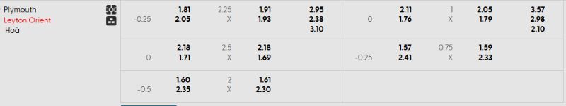 Soi kèo Plymouth vs Leyton Orient qua tỷ lệ